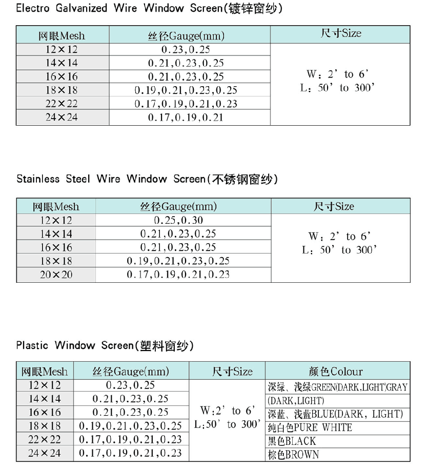 筛网类型:不锈钢铁丝网、镀锌铁丝网、油漆筛网、防火筛网、铝合金duxintie筛网、塑料、玻璃纤维、duxintie滤网